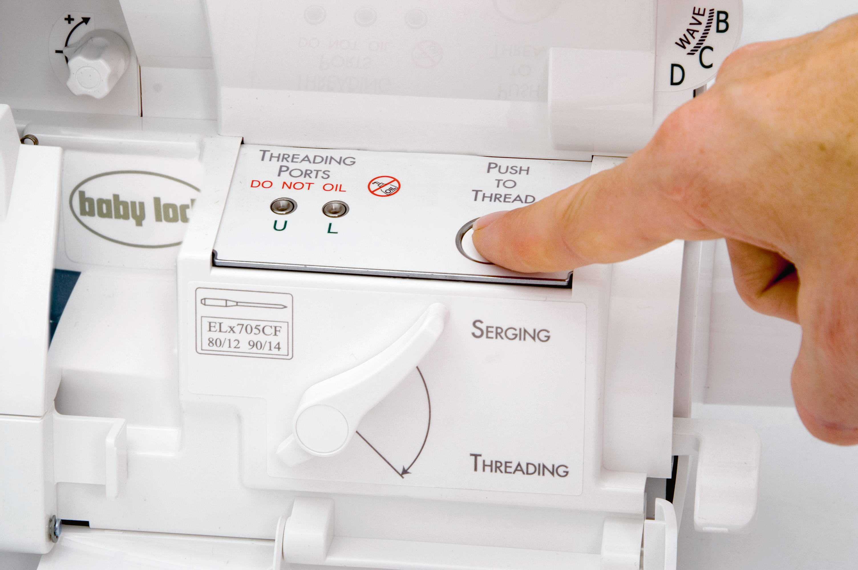 An innovative air threading system where bellows activated at the push of a button threads the looper threads reliably and quickly.
