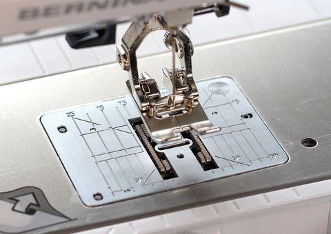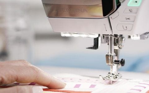 The hover function and knee lifter let you keep both hands on your work whilst the presser foot lifts automatically. With 8.5 inches of space to the right of the needle, this medium-sized machine handles larger projects comfortably. The BERNINA Stitch Regulator maintains even stitches during free-motion quilting, whether you're working slowly with ruler work or stitching at speed.