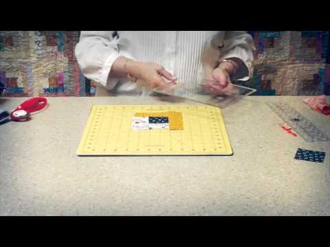 Sew four blocks together to 'piece' a circle. Sewing narrow strips to two adjoining sides of the centre square and wide strips to the remaining two sides, create the curve. Mark the wrong side of the centre square through the holes on the ruler, to ensure a perfect seam allowance. Then sew a round - two narrow and two wide then trim. Add two more rounds to complete a perfect 8" finished block.