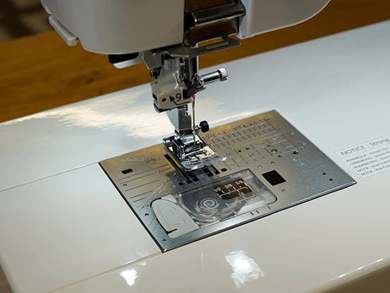 Swap between three included needle plates at the touch of a button. No screws or tools required. The patented magnetic system automatically retracts the new plate into place. Choose from zigzag, straight stitch or the professional HP plate for narrow industrial-style stitching with precise quarter-inch seams.