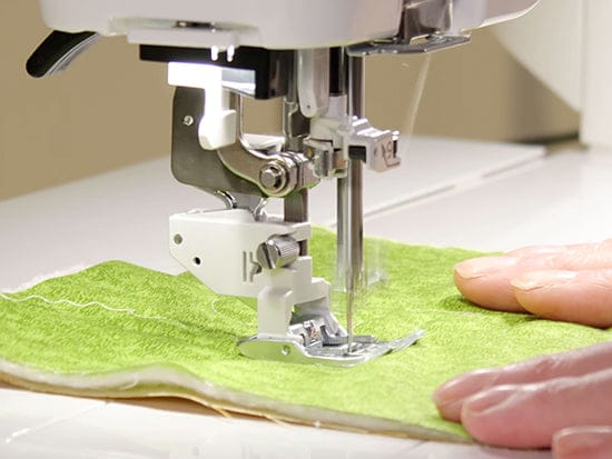 The SFS-i intelligent feed system keeps feed dogs lowered until you begin sewing, so you can position fabric exactly where you need it. Combined with AcuFeed Flex Plus dual feed, this system guides fabric evenly from top and bottom for consistent results on quilts, plaids and slippery materials.