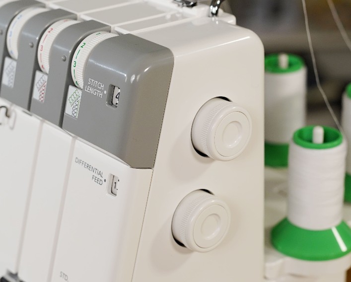 Roll Hem & Knife Control: Retractable upper knife with reduced pressure makes changing to rolled hems quick and easy, no need to change needle plates or chaining fingers.