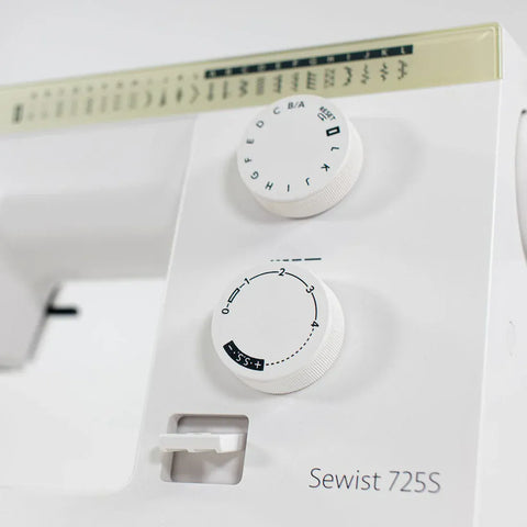 Mechanical sewing machines are built to last. That's exactly what the Janome Sewist 725S delivers. This model features Janome's signature jam-proof top-loading bobbin. You just drop it in and follow the instructional pictures on the bobbin case door to thread the machine. Not only does a top-loading bobbin mean fewer jams, but you can also see when it's running low. The built-in needle threader is quick to set up, which means you won't strain your eyes threading the needle during longer sewing sessions.