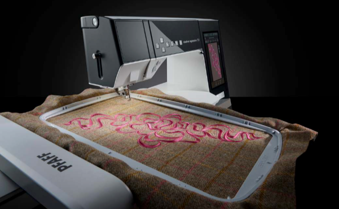 The clear, high resolution display shows stitches in actual size and embroidery designs in true color.