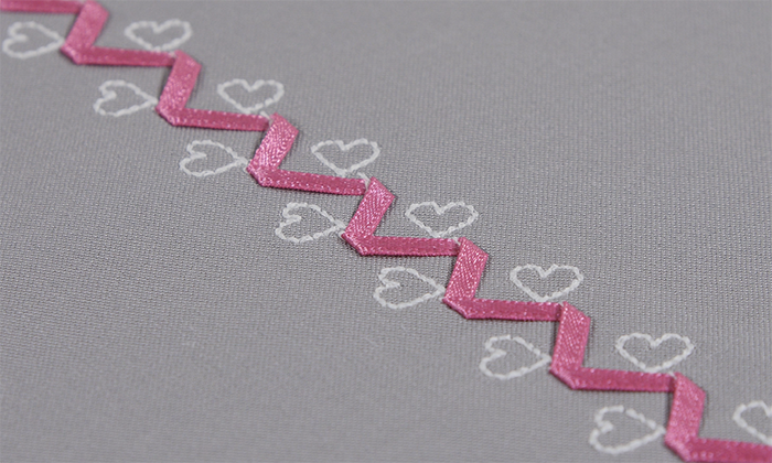 Customise your creations with professional decorative details like ribbon stitches, lace edges and floating stitches for dimensional detailing and special effects.